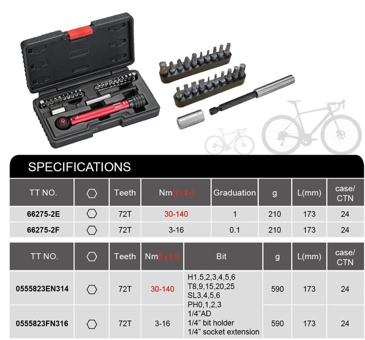 Portable 1/4" Industrial Grade Aluminum Bike Torque Wrench Set Customizable Bicycle Repair Hand Tools Torque Range 30-140Nm