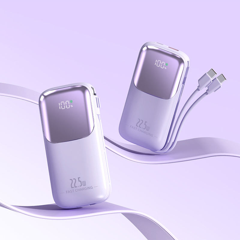 Portable 10000mAh Power Bank With 2 Cables 22.5W Fast Charging LED Display USB Output Travel Powerbank