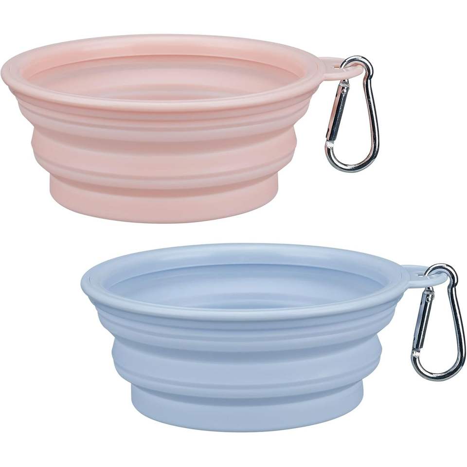 Portable 2-Pack Collapsible Leak Proof Dog Bowls 12oz Silicone Travel Pet Water Bottles 350ml Capacity for Cats