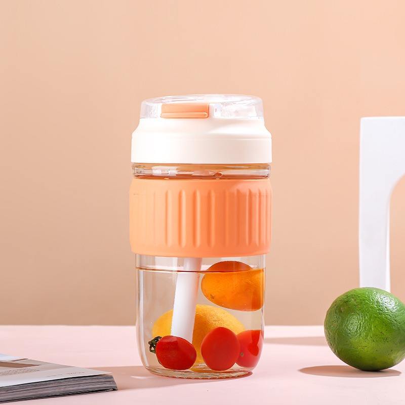 Portable 350Ml Reusable Modern Glass Coffee Cup with Straw and Spill-Proof Lid Food Safe