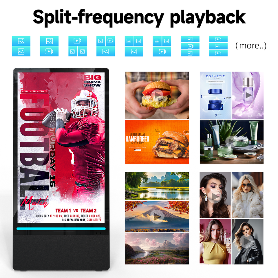 Portable 43-49 Inch 4K IP65 LCD Digital Poster Kiosk Battery Powered for Outdoor Floor Stands Shopping Malls Elevators Education