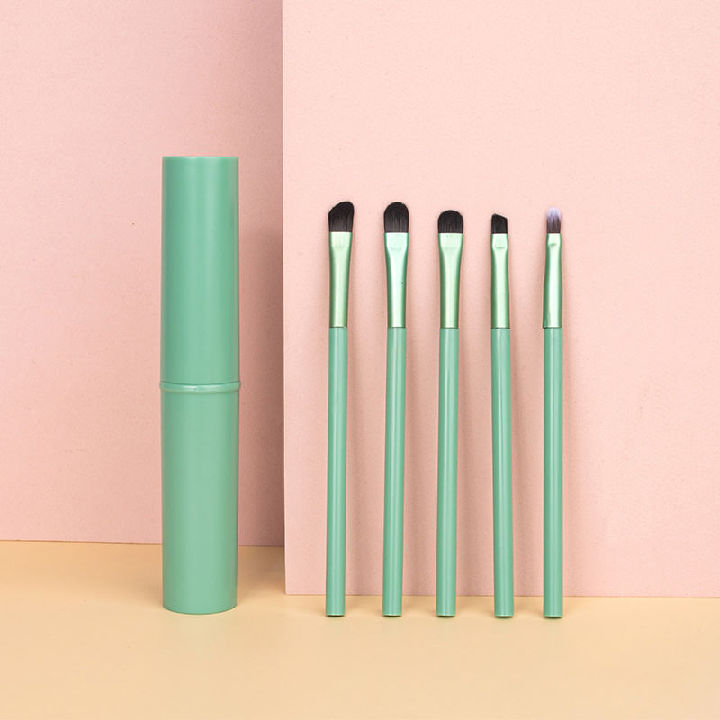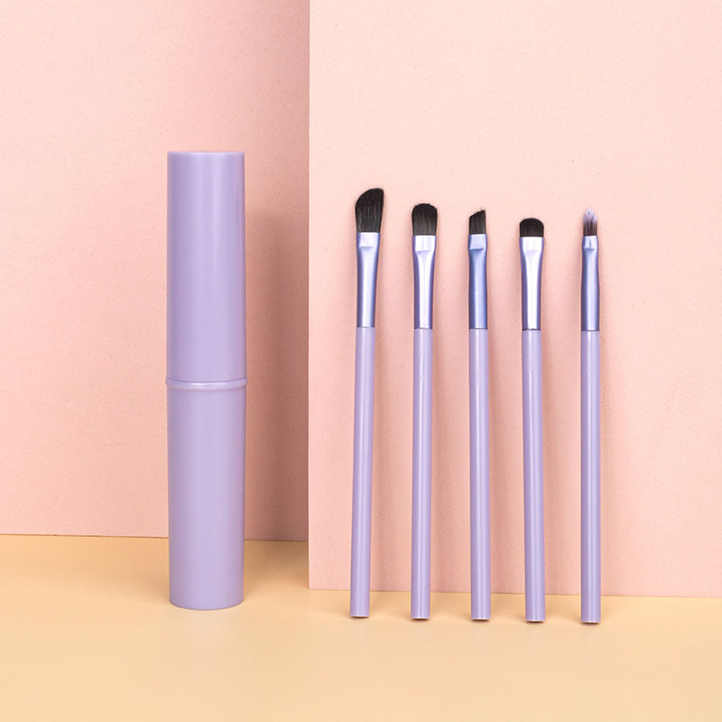 Portable 5-Piece Smudge Resistant Barrel Eye Makeup Brushes Set Free Sample Eyeliner Eyebrow Lip Brushes for Face