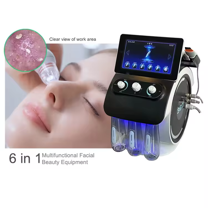 Portable 6 in 1 H2O2 Visible Blackhed Removal 360 Water Carving Aqua Jet Peeling Dermabrasion Facial Machine