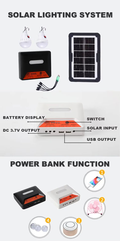 Portable 6V3W Mini Solar Lighting System Kit USB Rechargeable with LED Light Bulbs for Garden or Road Application