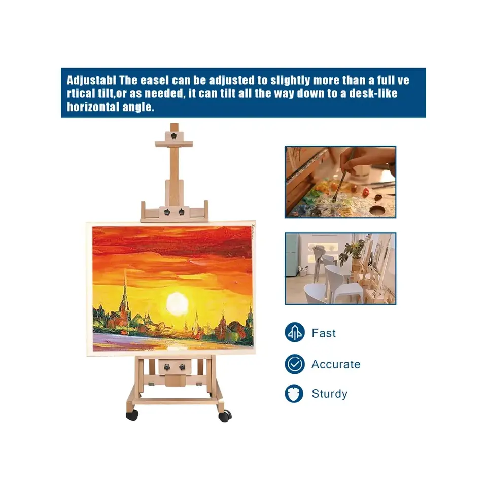 Portable Adjustable Artist Easel Stand Ease Wheel Easy Carry Vertical Horizontal Folding Sketch Palette for Advertising Painting