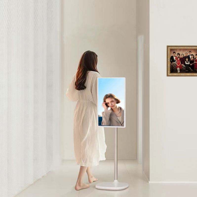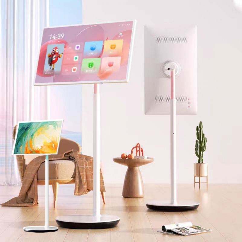 Portable Android 10 HD Definition Smart TV Tablet with 27-Inch Rotating Touch Display LED Backlight White Cabinet Stand