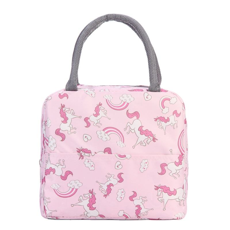 Portable Animal Printing Insulated School Lunch Cooler Bag for Kids Thermal Cooler Lunch Bag for Food with Long Handle