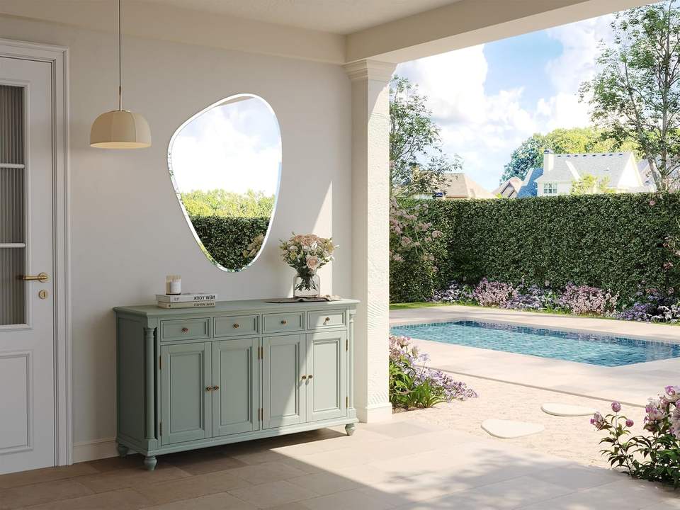 Portable Gold Wrought Iron Framed Glass Bathroom Mirror Beveled Irregular Wavy Wall Mounting Eco-Friendly Customizable Size