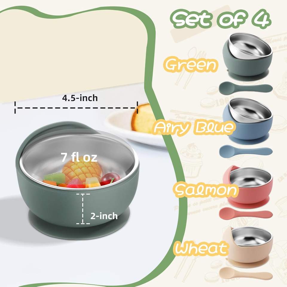 Portable Baby Feeding Kids Dining Silicone Bowl With Snack Cover Suction Base Bowl 316 Stainless Steel Bowl