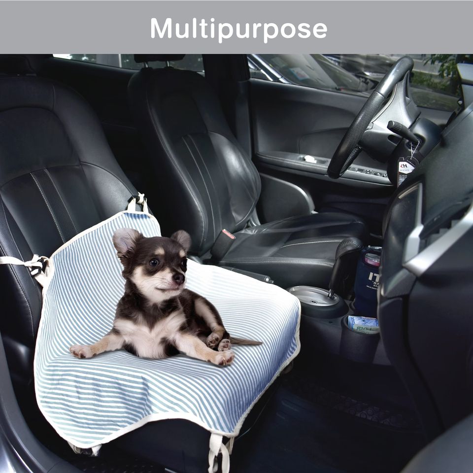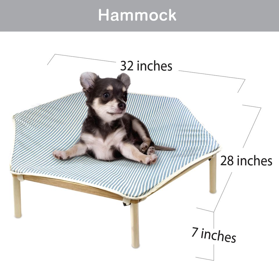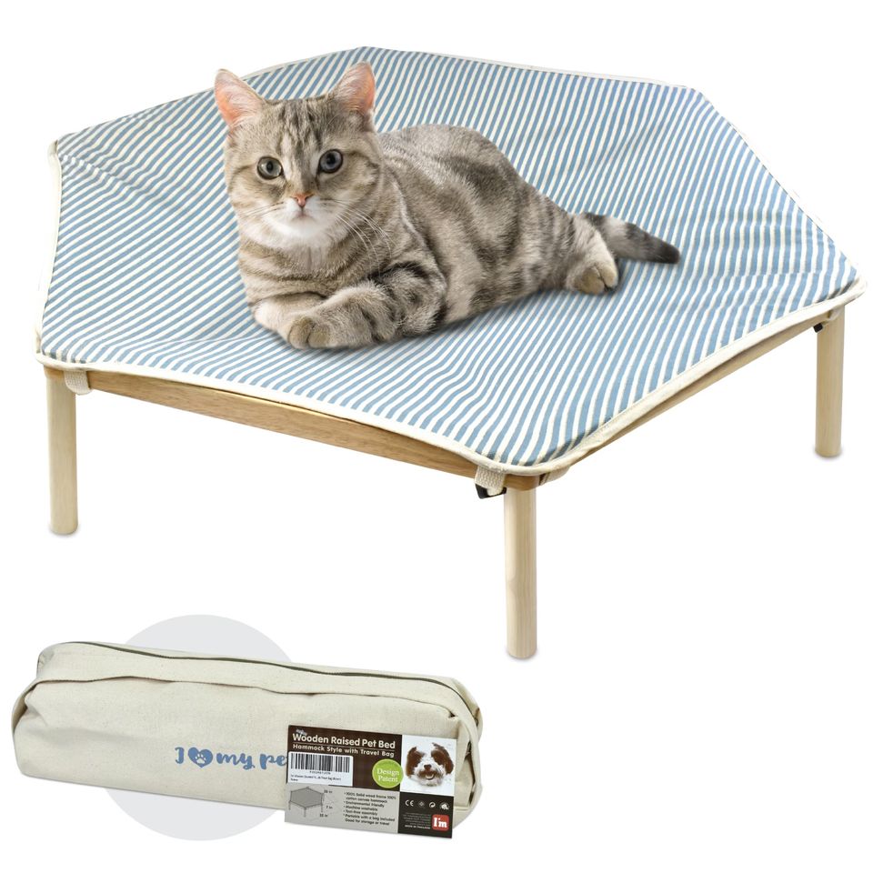 Portable Blue and Brown Wooden Elevated Pet Bed Small Dog Cat Hammock Washable Cotton Canvas Travel Bag