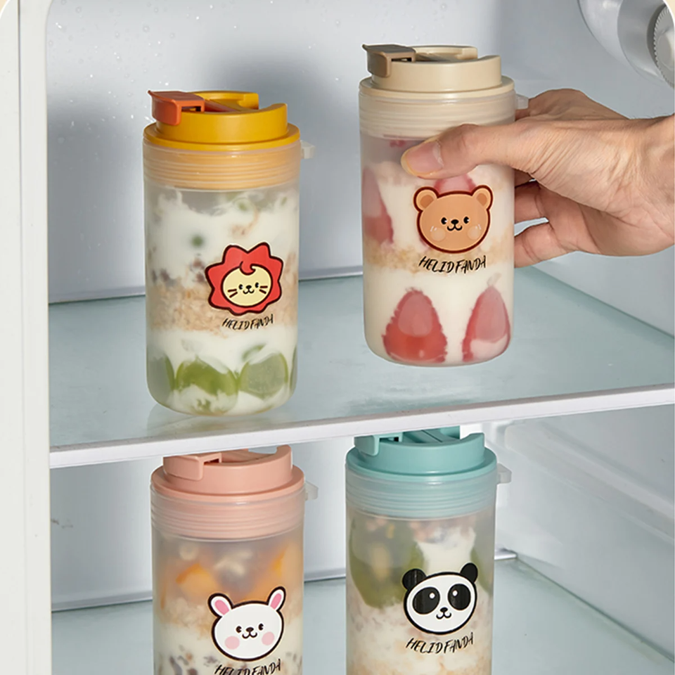 Portable Breakfast Oat Cup With 316 Stainless Steel Spoon Plastic Milk Yogurt Oatmeal Jar Leak Proof Food Container