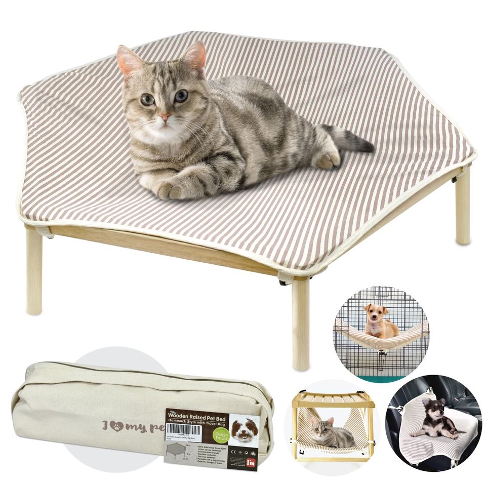 Portable Brown Wooden Elevated Pet Bed Small Dog Cat Hammock Washable Cotton Canvas Furniture Travel Bag Pet Beds Accessories
