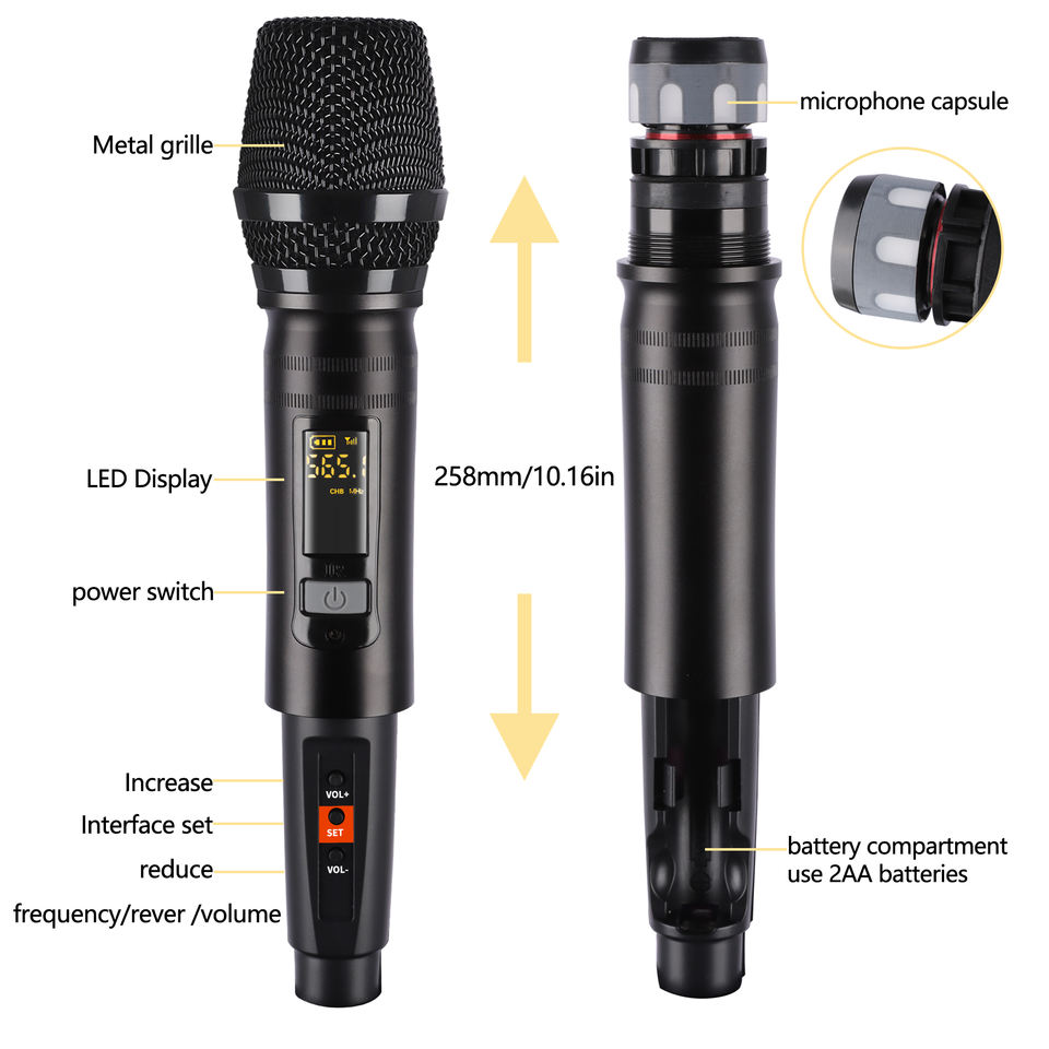 Portable Cardioid Dynamic Microphone UHF Handheld USB Wireless for Karaoke Podcasting Made Metal for Computer Recording Singing