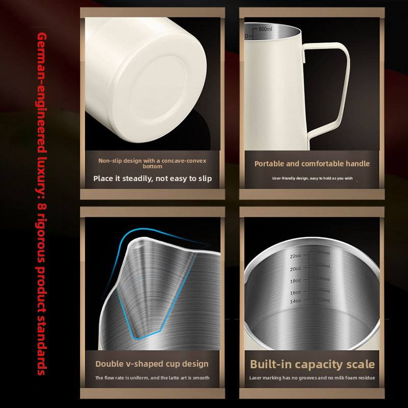 Portable Coffee Machine Latte Cup Set - Zen Asian Design, Stainless Steel with Pointed Tip for Easy Milk Foam