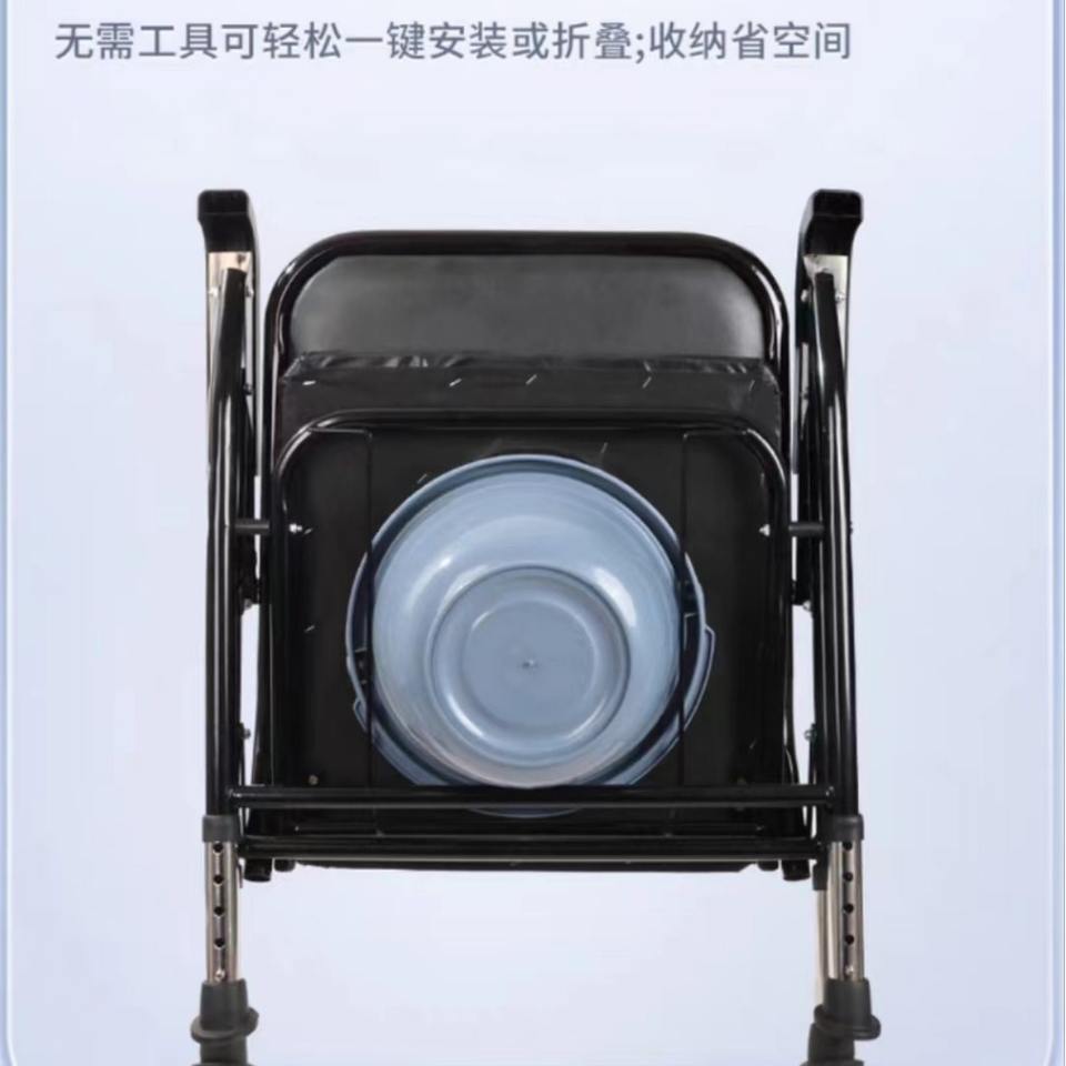 Portable Commode Chair Foldable For Elderly Pregnant Disabled Home Use With Blue Potty Bucket And Armrests