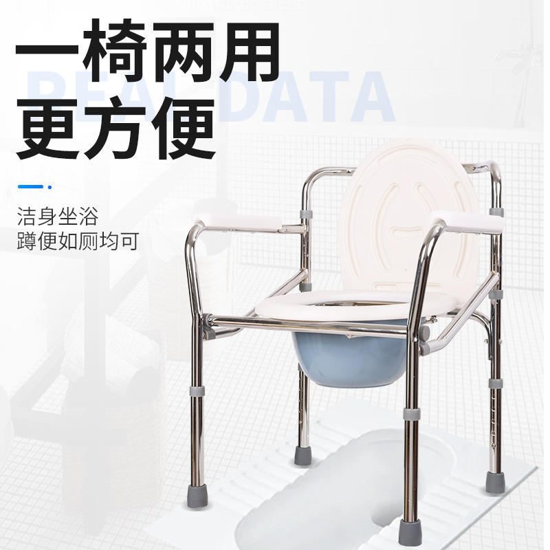 Portable Commode Chair Stainless Steel Foldable Backrest Toilet Seat For Elderly Multifunction Health Product