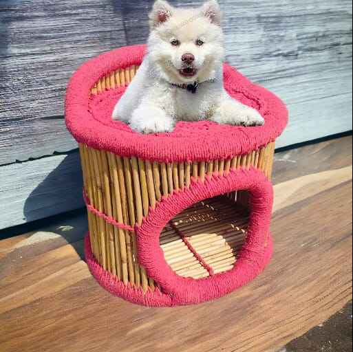 Portable Cozy Dog Pet Bed Handmade Cave Cat House Indoor for Dogs Luxury Stylish Portable Warm Round Stool Bony Inlay Console