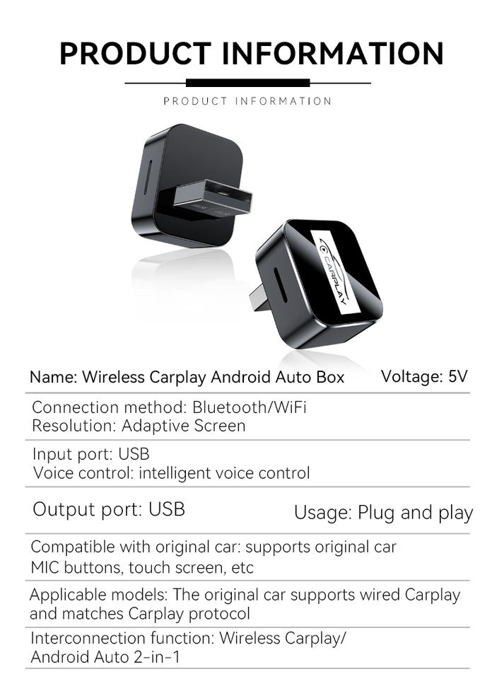 name:2 in 1 Wireless Usb Carplay Android Auto Box for Car