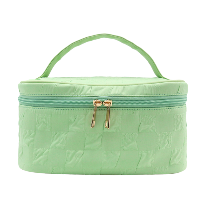 Portable Cylindrical Cosmetic Bag Eco-Friendly Large Capacity Polyester with Zipper Closure Shallow Green Detachable Handle
