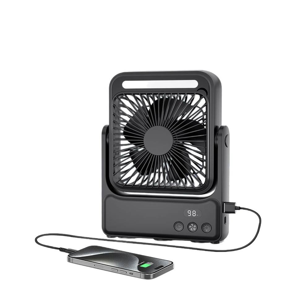 Portable Desk Fan 6 Inch With Usb Charging And Battery Display For Indoor Outdoor Use