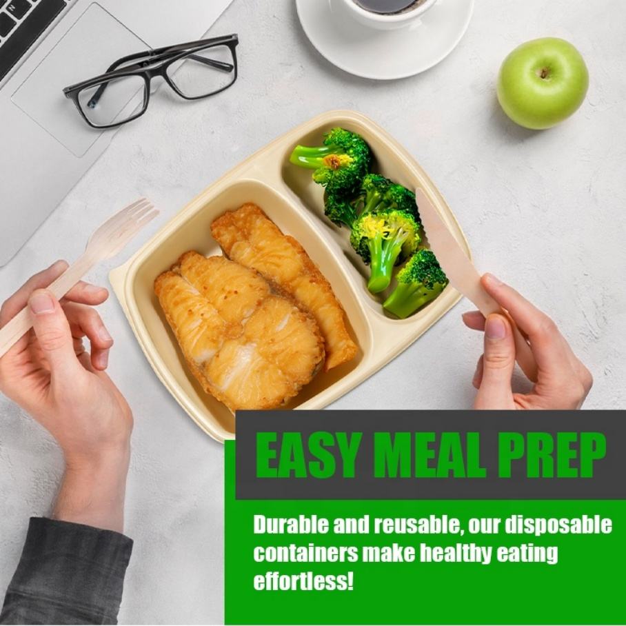 Portable Disposable Rectangular PP Plastic Takeout Lunch Box Compostable 2-Compartment Food Sandwich Packaging Container Lid