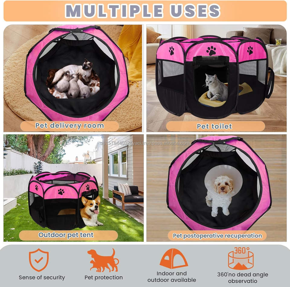 Portable Dog Playpen Fence Cage for Outdoor Indoor Cat Puppy Pet Play Pens Foldable Pop Up Kennel Tent Waterproof Dog Playpen