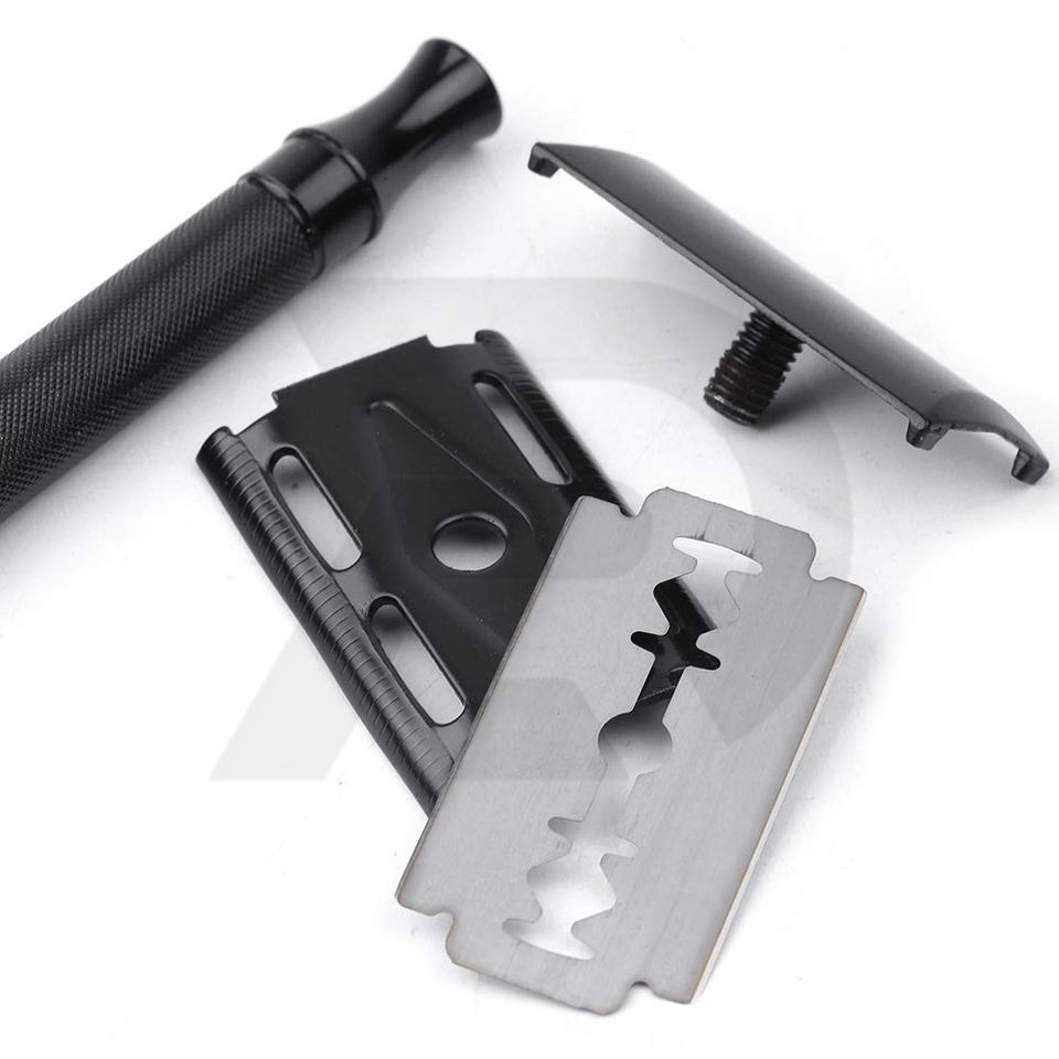 Portable Double-Edge Safety Razor for Home or Salon Hair Removal Reusable Black Design with OEM Option