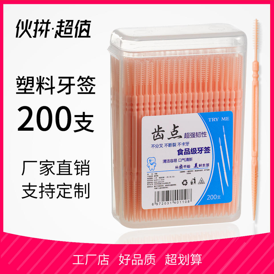 Portable Double-Ended Toothpicks Box 200 Export-Grade Plastic Family Pack Disposable Multi-Purpose Oral Hygiene Products