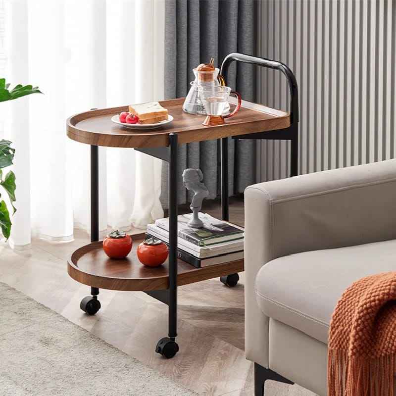 Portable Double Layer Wooden Trolley Coffee Table with Storage Shelves Ideal for Bedroom Living Room and Office Decor