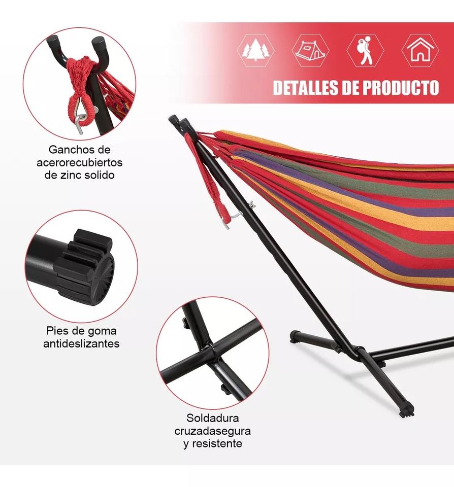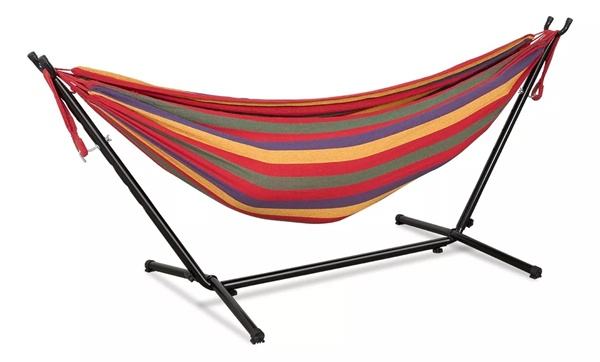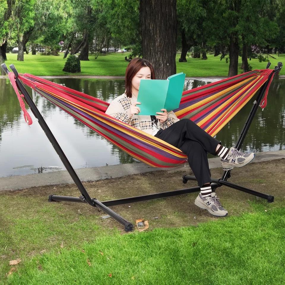 Portable Double Parachute Hammock with Steel Stand Indoor and Outdoor Fabric and Nylon Material for Beach Use