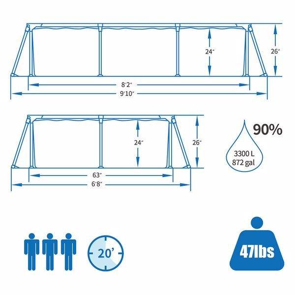 Portable Easy Set Rectangular Swimming Pool with Metal Frame for Families Above Ground