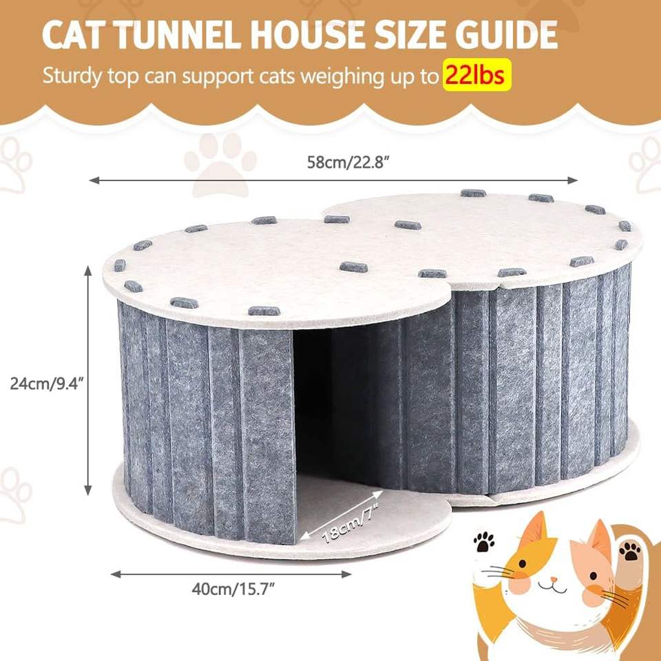 Portable Eco-Friendly Felt Pet House Foldable Donut Cat Bed with Round Peekaboo Tunnel Hideaway Cave for Multiple Cats