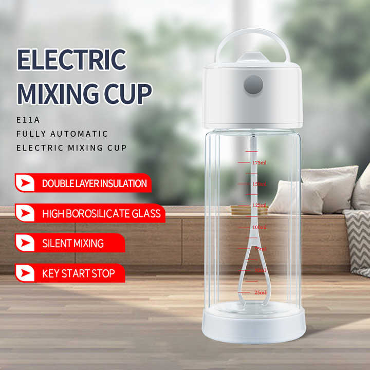 Portable Eco-Friendly Minimalist Double Wall Design Glass Mug Cleaning Brush Battery Powered Self-Mixing Heat Resistance Instant