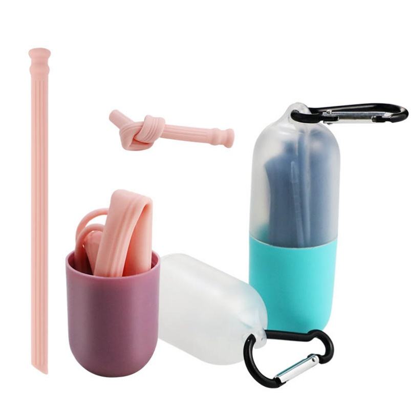 Portable Ecofriendly Reusable Boba Milk Water Drink Straw Collapsible Silicone Drinking Straws With Case