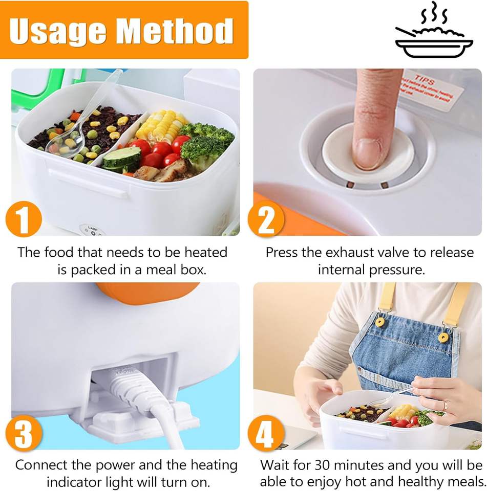 Portable Electric Heating Lunch Box Electric Self Heating Leakproof Bento Food Warmer Container