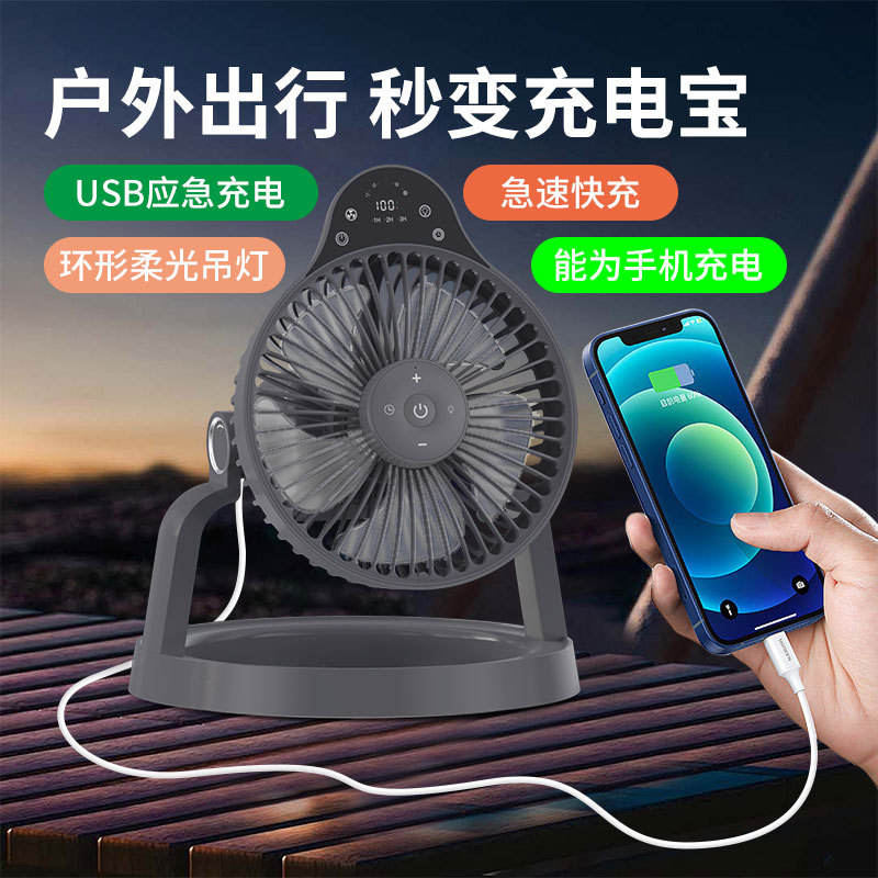Portable Fan With Light Rechargeable Battery 12H Runtime Outdoor Camping Desktop Use