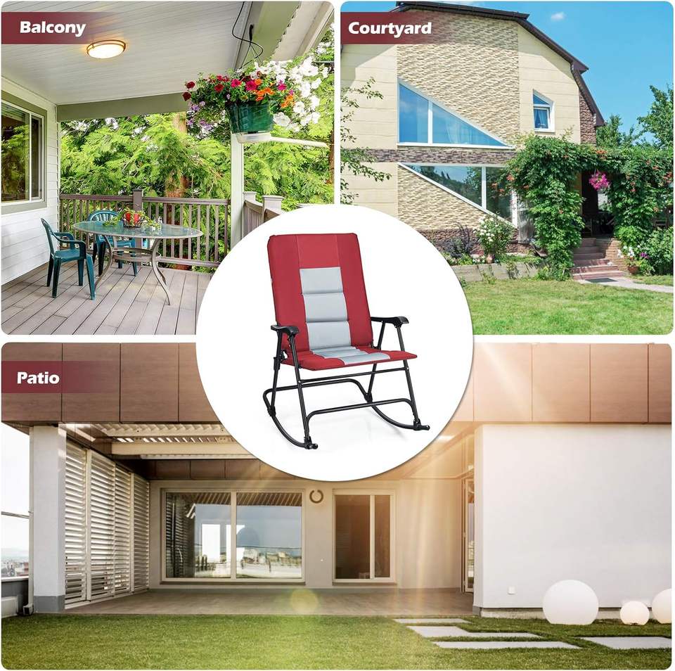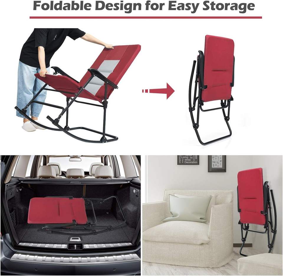 Portable Foldable Oversized Camping Rocking Chair Padded Armrest 350 lbs Weight Capacity for Outdoor Patio Backyard Garden Use