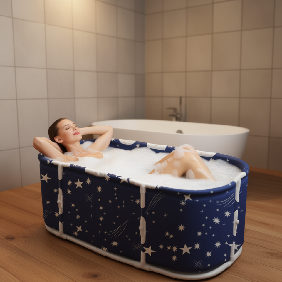 Portable Foldable Thermostatic SPA Bathtub With Star Pattern Design For Adults In Family Bathroom, PVC Material, Oval Shape, Mod