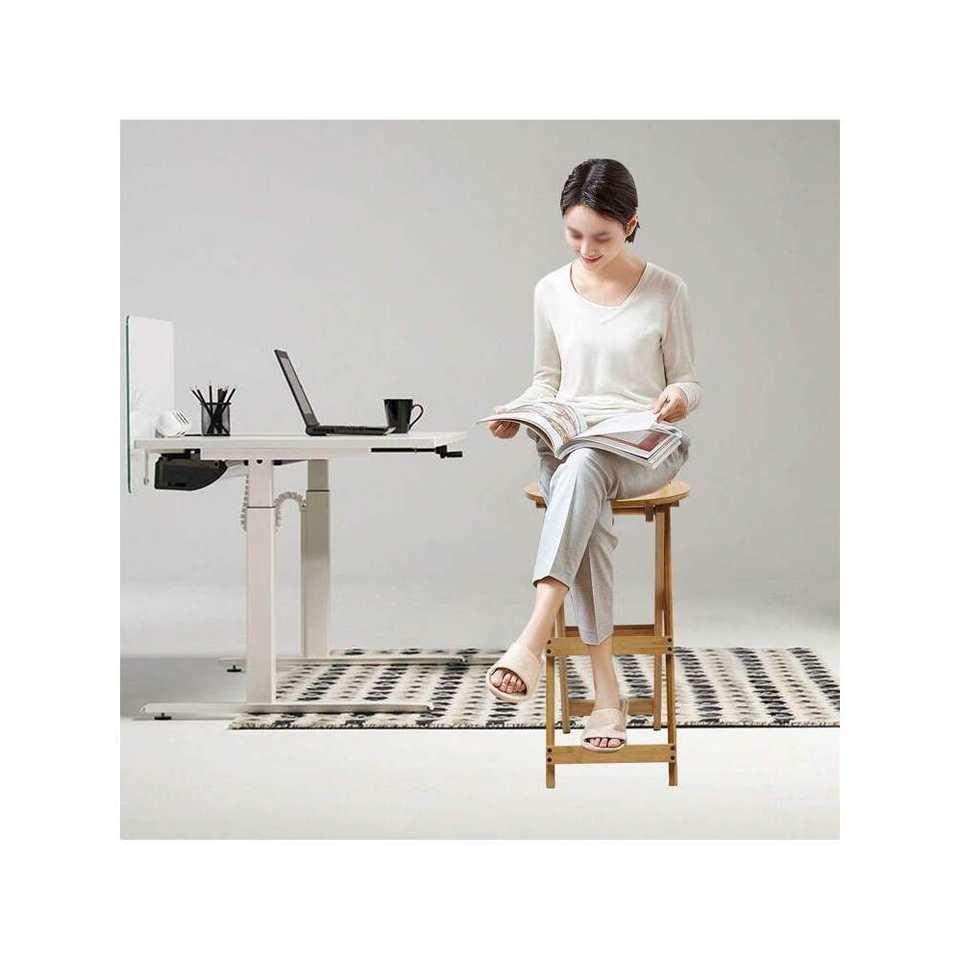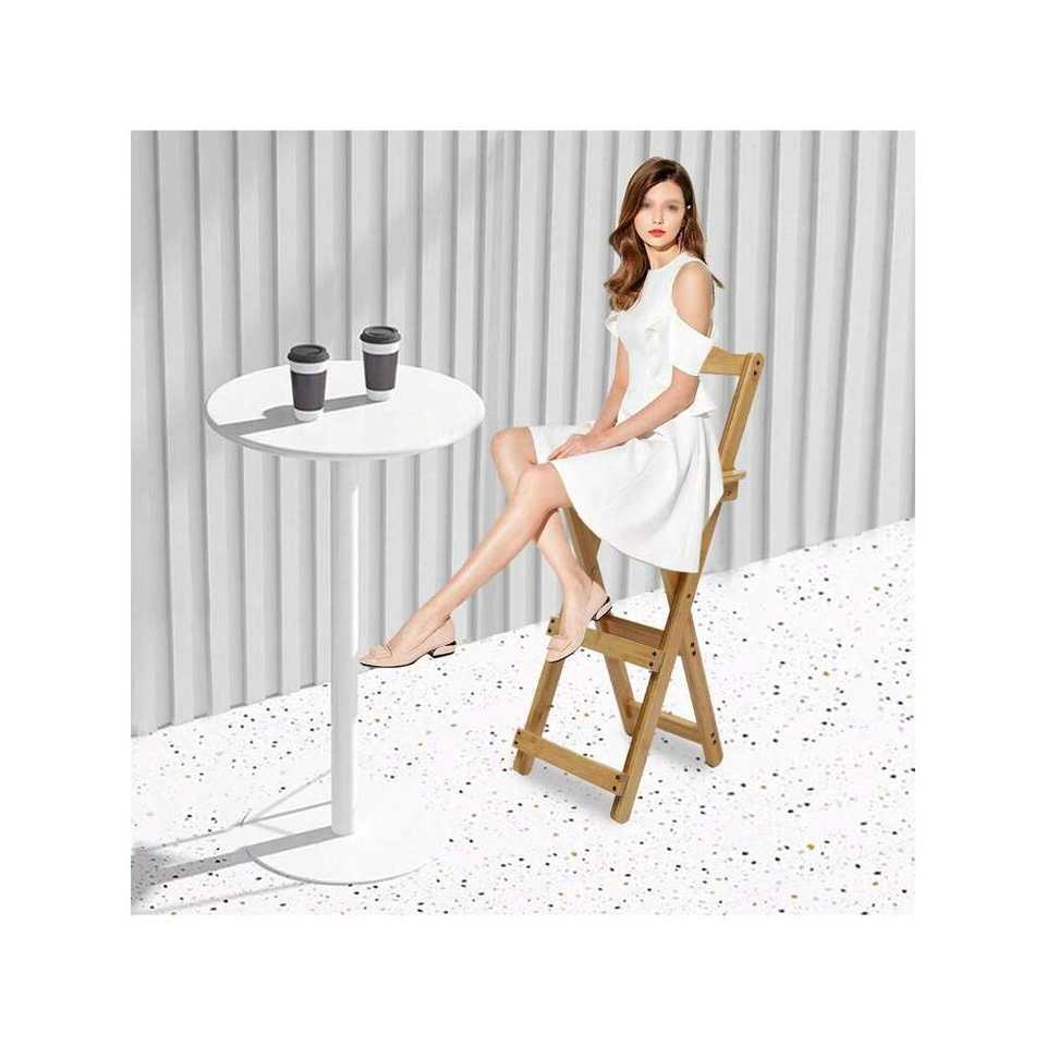 Portable Folding Bamboo Bar Stool with Backrest Footrest Solid Wood Frame Easy Assembly for Home Kitchen Island Breakfast