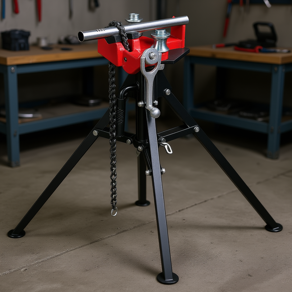 Chain Vise Stand 36.4 In Pipe Capacity Portable Folding Steel Legs Manual Operation Industrial Machinery Tool Equipment