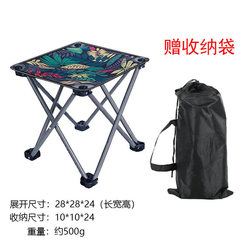 Portable Folding Stool Square Outdoor Garden Chair Compact Lightweight Foldable Camping Bench With Tropical Print Design