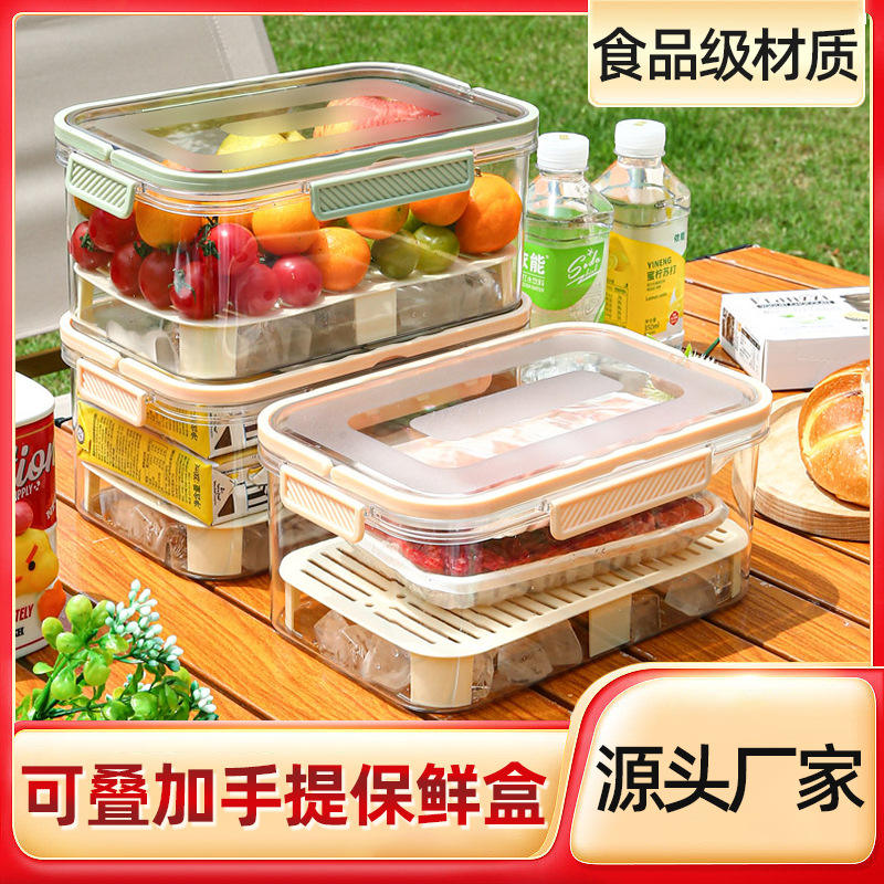 Portable Food Storage Container Rectangle Clip On Lid Camping Picnic Fruit Salad Lunch Box With Handle