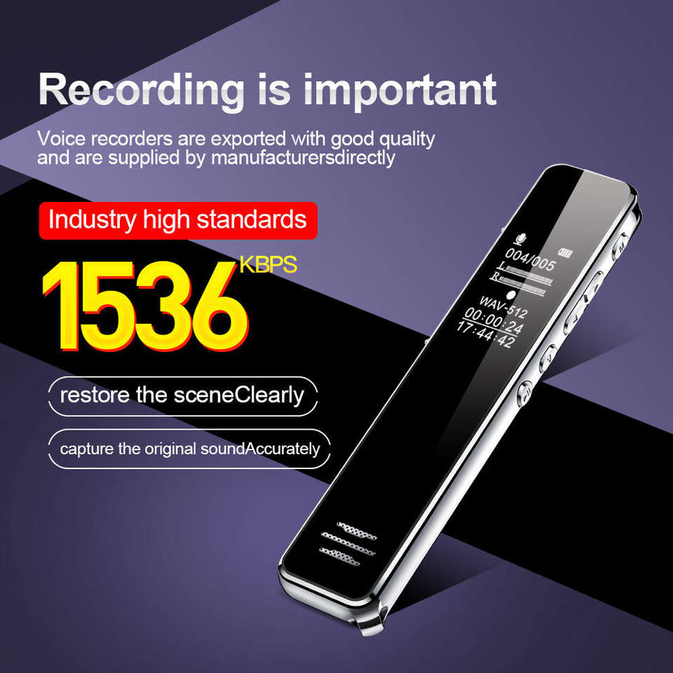 Portable HD Digital Voice Recorder Professional Long Time Audio Dictaphone with MP3 Player Small Sound Recorder Voice Activated