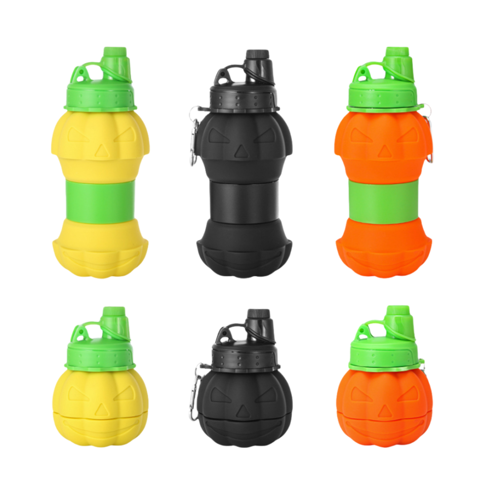 Portable Halloween Pumpkin Eco-Friendly Lightweight Disposable Silicone Foldable Collapsible 800ml Sports Water Bottle