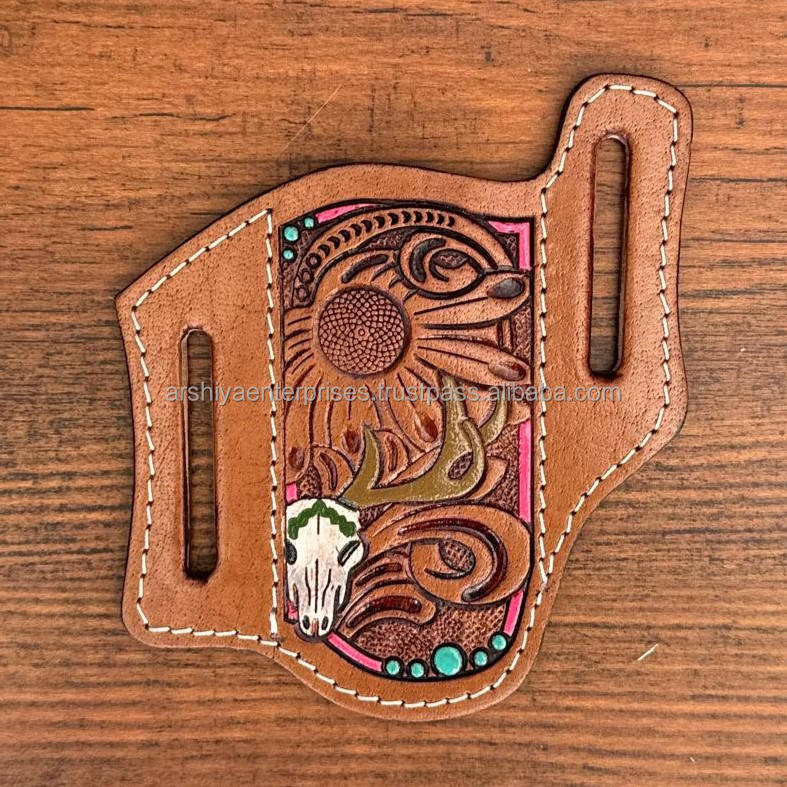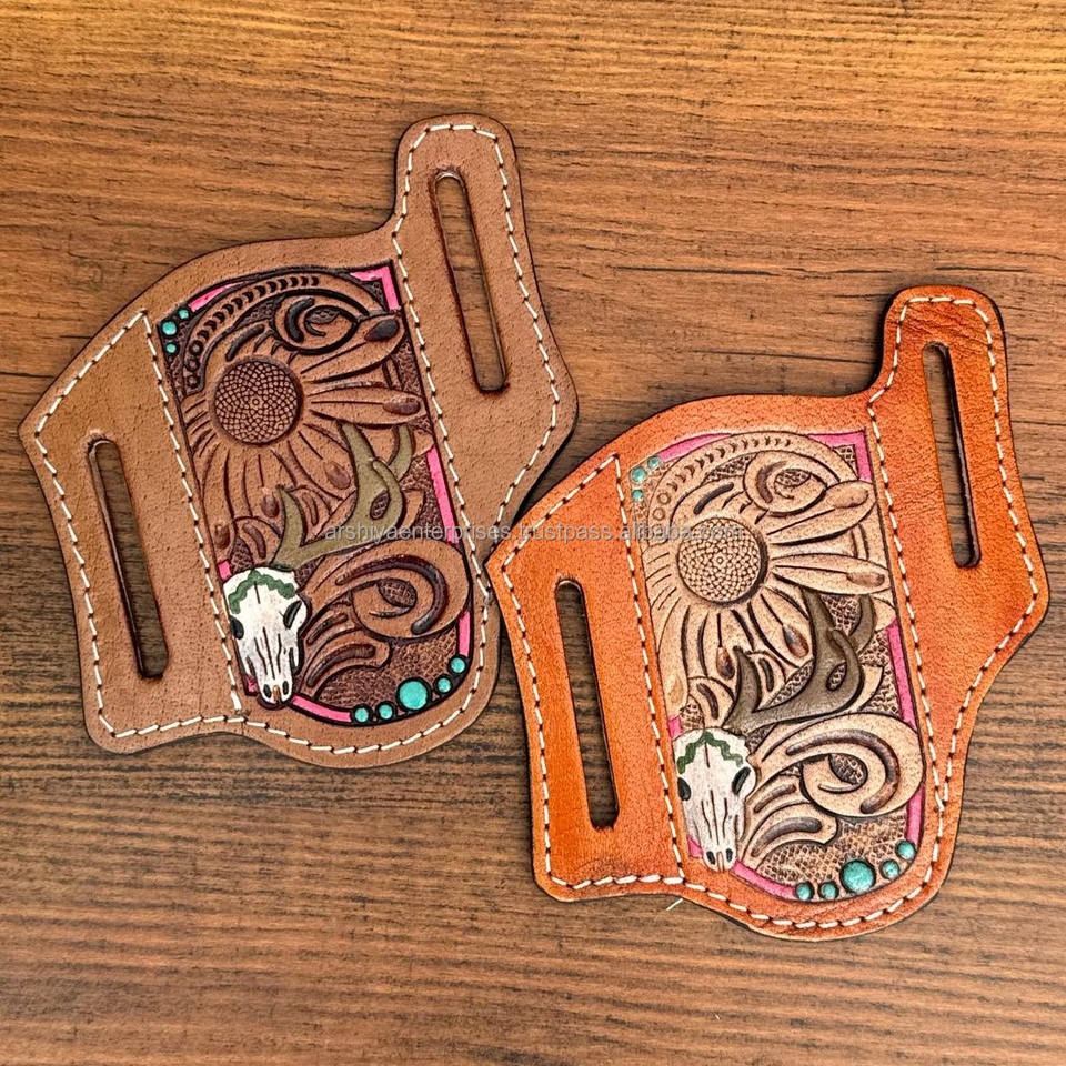 Portable Hand Tooled Knife Holster Genuine Leather Knife Sheath for Fixed/Folding Blade Knives Floral Sheath for Belt for Unisex