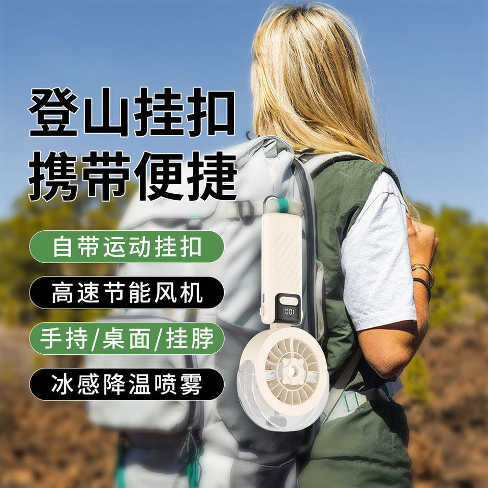 Portable Handheld Fan With Mist Spray 16C Cool Wind 100 Speed Levels Rechargeable Brushless Motor Foldable Design
