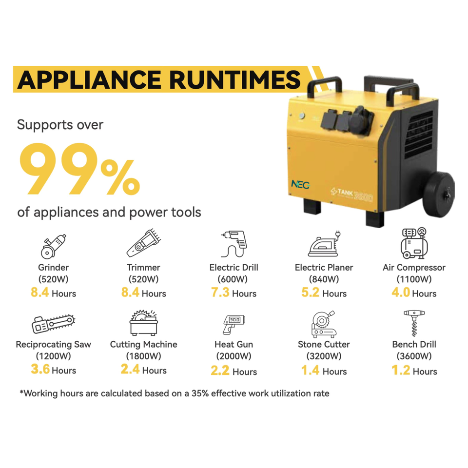 Portable Heavy-Duty Station Fast Charging 3600 NEG Tank Pure Sine Wave Solar Panel Flashlight-for External Battery Construction