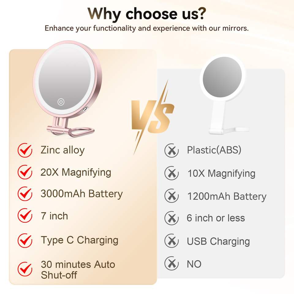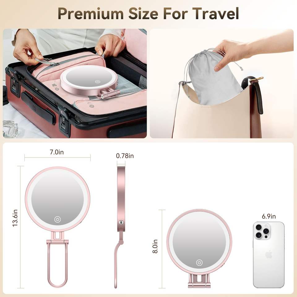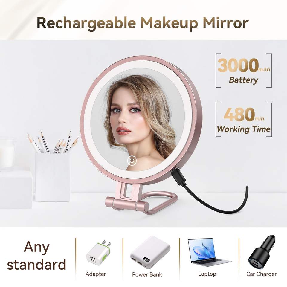 Portable Illuminated Beauty Mirror, 3 Light Colors Makeup Mirror, Dimmable Desktop Handheld