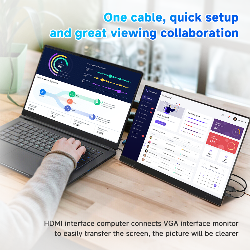 Portable LED Monitor 13.3 Inch FHD IPS 1000:1 Contrast Ratio Type-C for Laptop Dual Screen Use