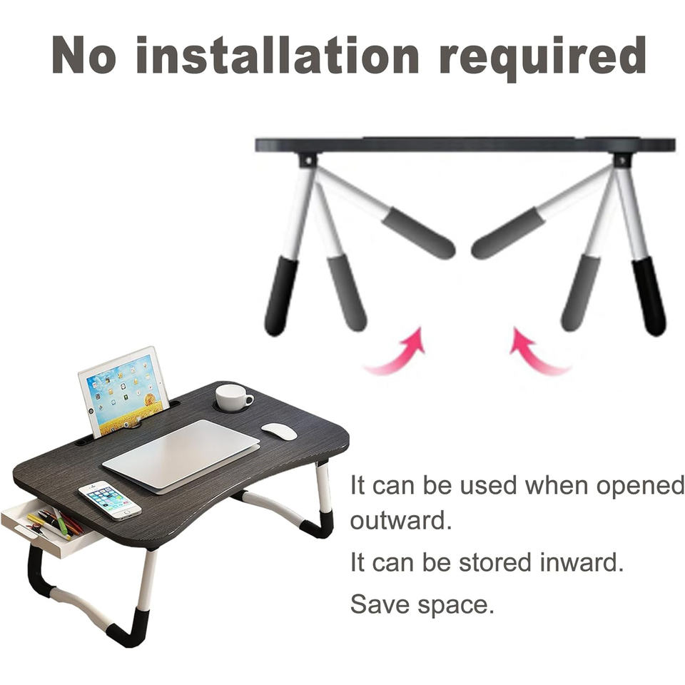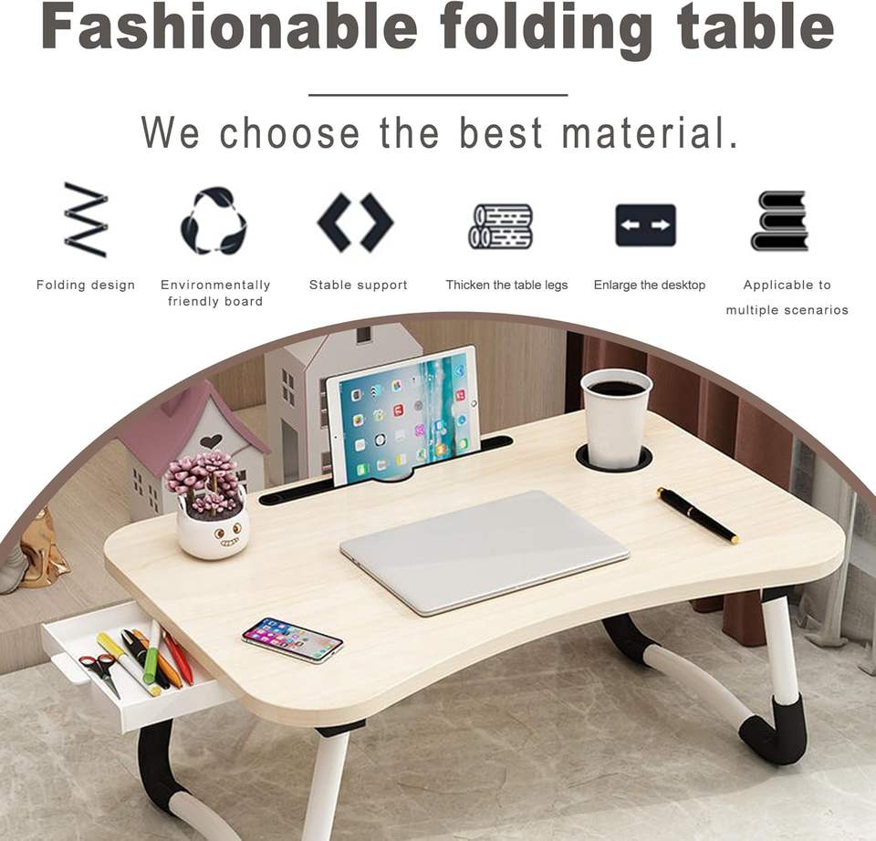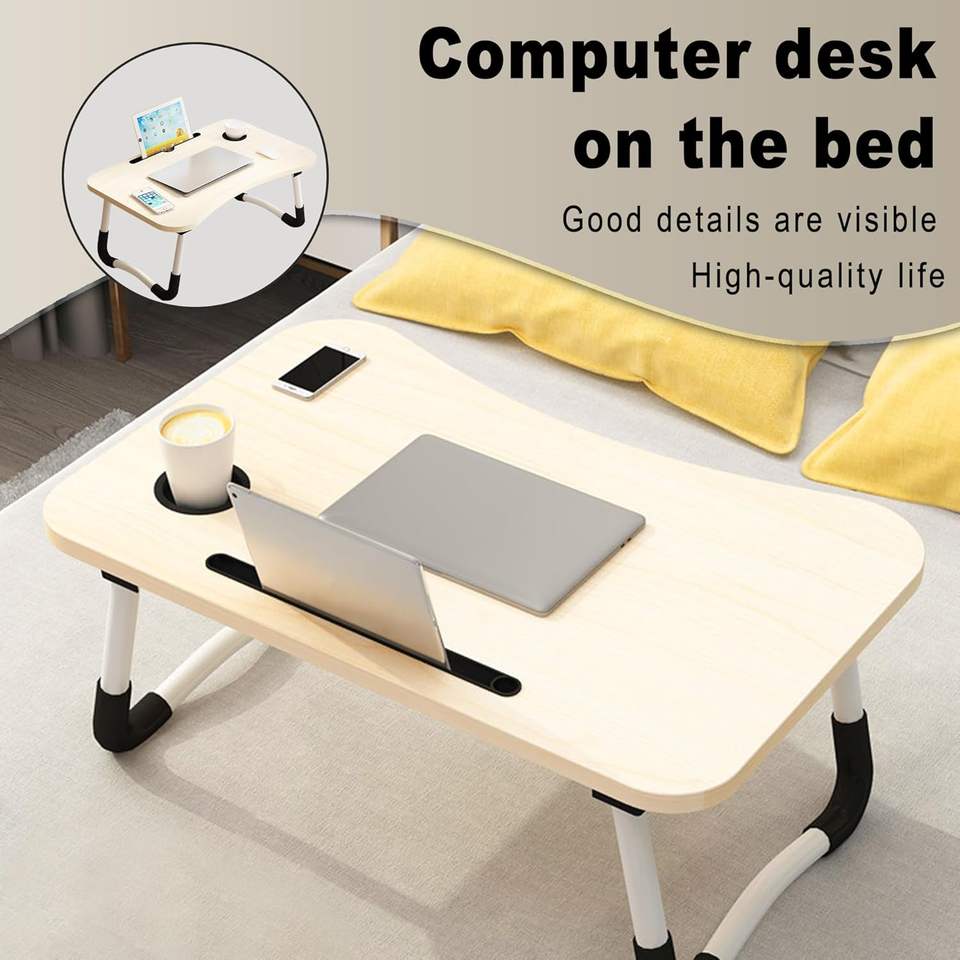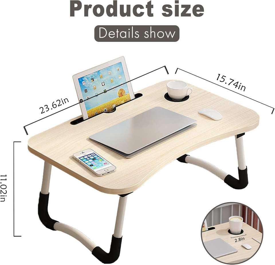 Portable Laptop Table Hot Selling Foldable Wooden Study Bed Tabletop with Cup Holder Convenient Storage for Home Use